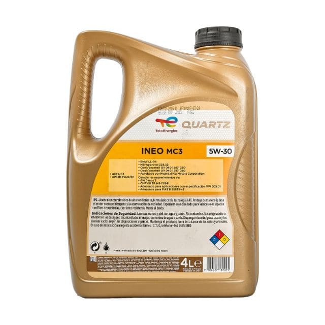 Quartz Ineo MC3 5W-30 es un aceite de tecnología sintética Low SAPS especialmente desarrollado para cumplir los requerimientos técnicos de vehículos de última generación (BMW, Mercedes-Benz, General Motors y Hyundai Kia*).