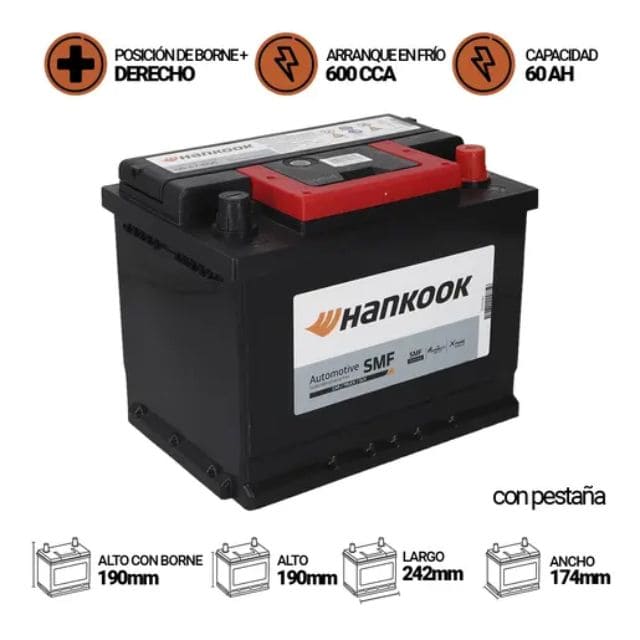 Batería de auto HANKOOK MF47-600 de 60AH y 600CCA es uno de los elementos imprescindibles en todo vehículo. Cumple la función de almacenar la energía eléctrica para luego ser transmitida al motor de partida cada vez que quieras arrancar. Nuestro producto es una batería húmeda, rellena de ácido, sellada y 1% libre de mantención. Sus 600 CCA hacen de esta la mejor opción de compra a la hora de elegir una nueva batería para tu automóvil.