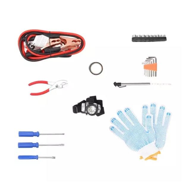 ¡Disfruta de la seguridad y la tranquilidad de contar con un kit de emergencia profesional! Es un producto especialmente diseñado para ser tu mejor compañero de viaje en cada recorrido, es imprescindible junto a tu caja de herramientas, las múltiples funciones de sus piezas te permitirán resolver de manera efectiva las anomalías mecánicas y eléctricas que presente tu vehículo. Desde cambiar un neumático averiado hasta recargar la batería de tu auto, las herramientas del kit te facilitarán las operaciones manuales para retomar tu marcha en la carretera. El Kit de Emergencia de 11 piezas de la marca Power Grid cuenta con un estuche de transporte, una señal de emergencia fluorescente, un cable roba corriente 100A de 2 metros, un par de guantes de algodón, un destornillador de paleta, un destornillador hexagonal, nueves dados, un alicate de 6”, una cinta eléctrica de 5 metros, un medidor de presión de neumáticos y ocho llaves allen. Los productos DGP han sido diseñados como una alternativa confiable y de calidad para cubrir las necesidades de tu vehículo, adquiere su amplia gama de productos y comprueba su eficacia y máxima tecnología.